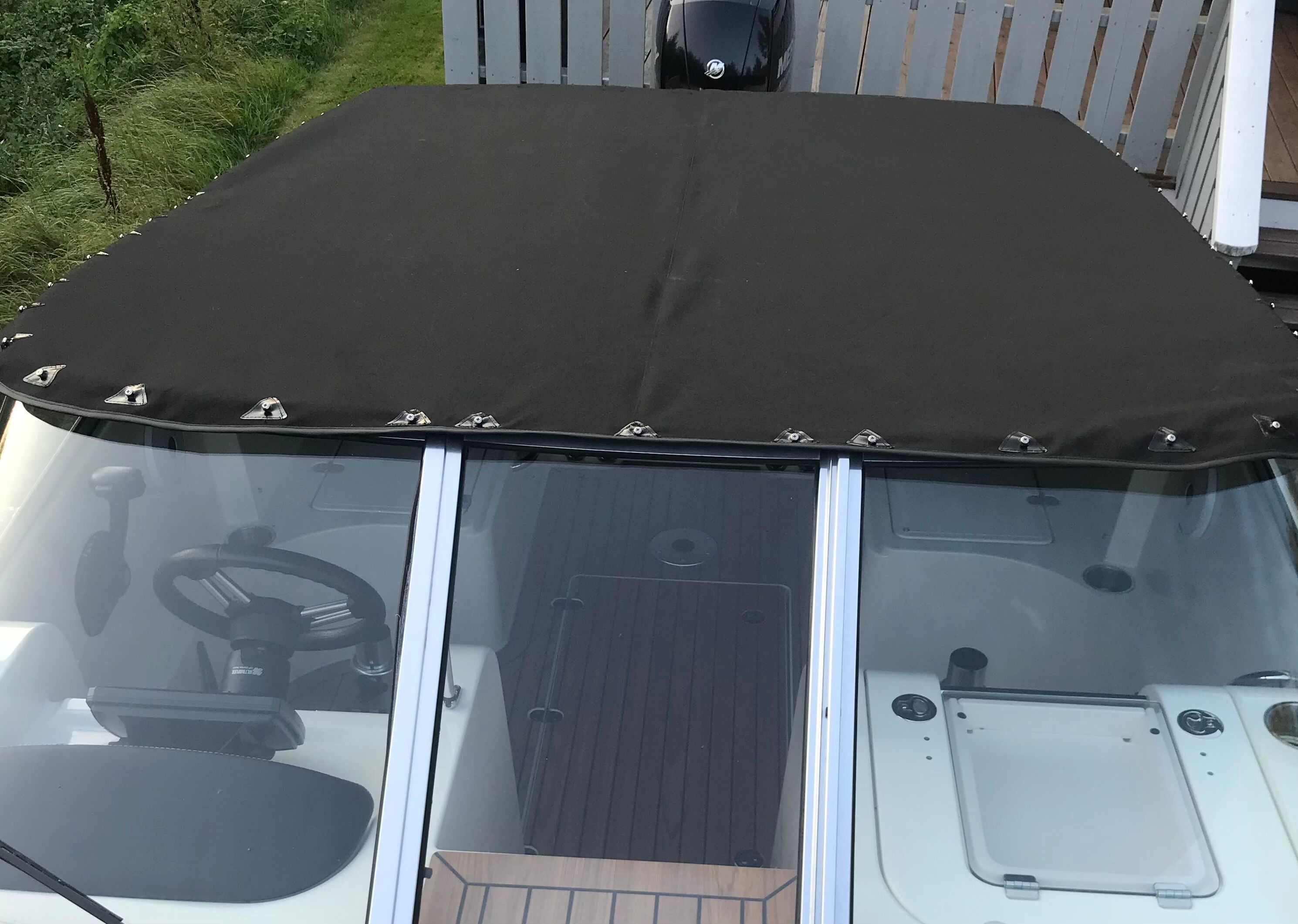 Vi kan lage en helt ny kalesje. Den lager vi basert på mal fra gammel kalesje eller ved å ta nye mål direkte på båten.
